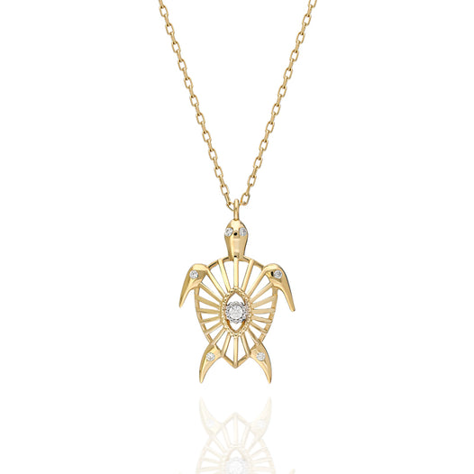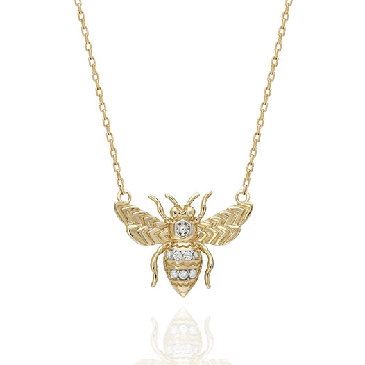 14K Beehive & Pavé Bee Necklace — Blue Marquise Accent