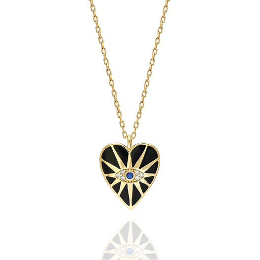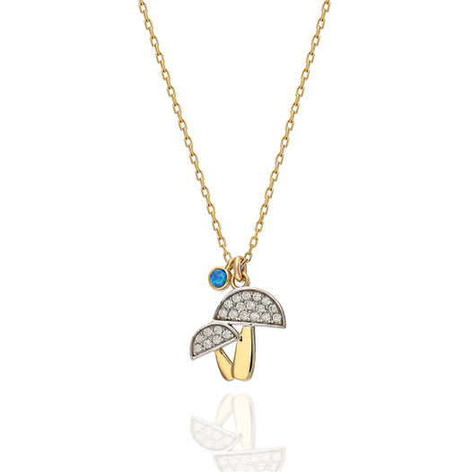 14K Hamsa Protector Eye Necklace with Opal Charm