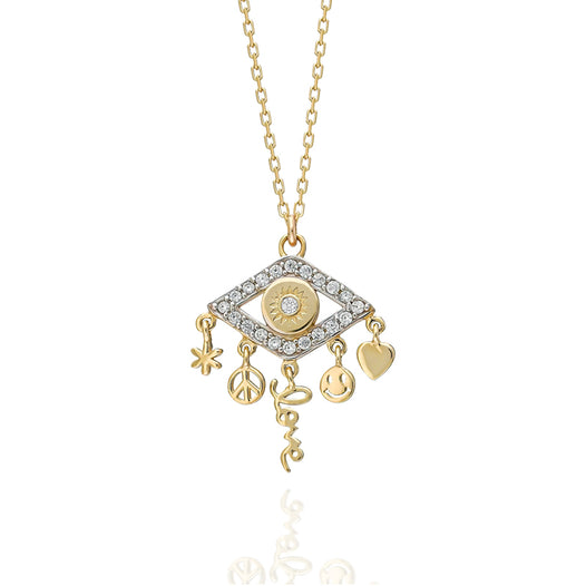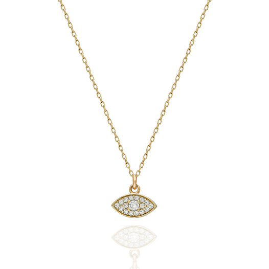 14K Protector Eye Charm Necklace — Pavé with Dangles